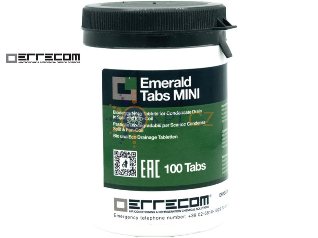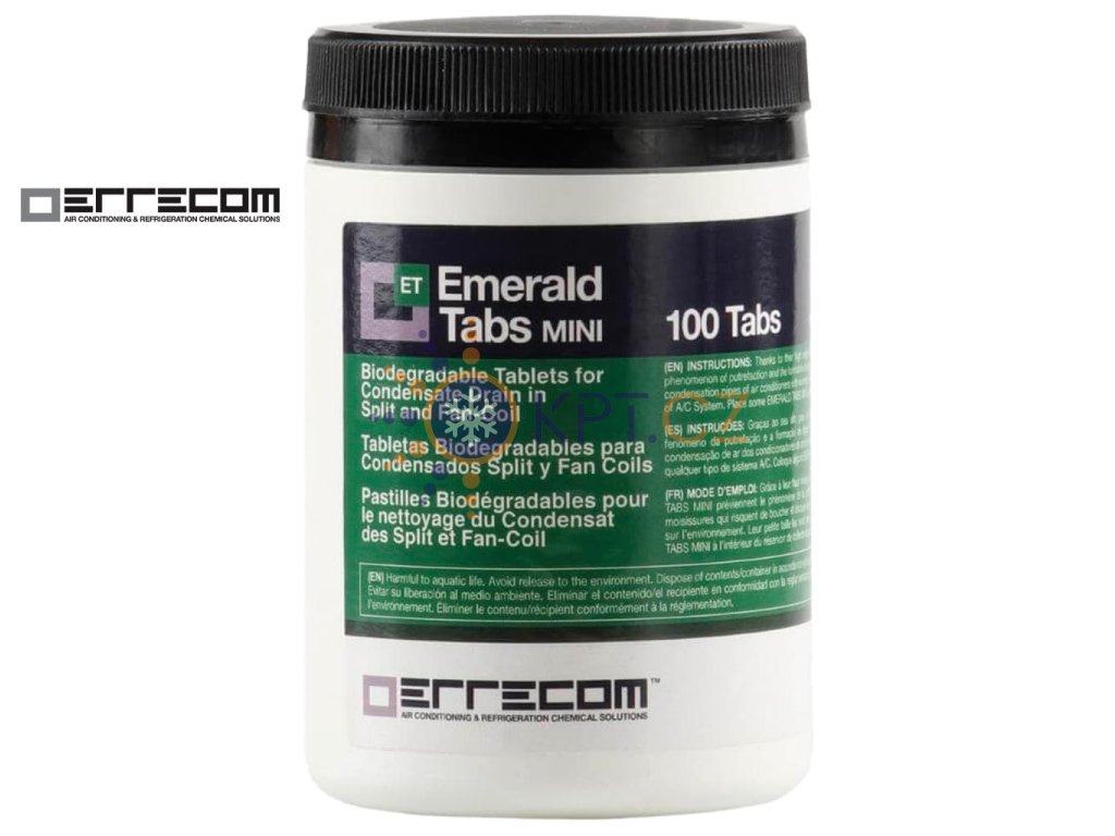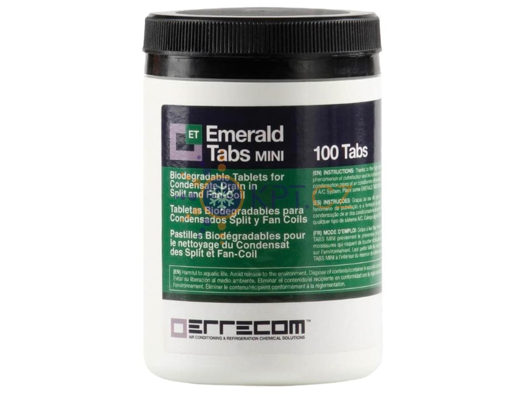 Čisticí tablety do odtoku kondenzátu ERRECOM Emerald Tabs Mini jsou jednoduchým a účinným řešením, jak udržet klimatizaci do bytu i fan-coil v perfektní kondici. Zabrání vzniku plísní, řas a slizu, minimalizují zápach a ucpávání odtoku.