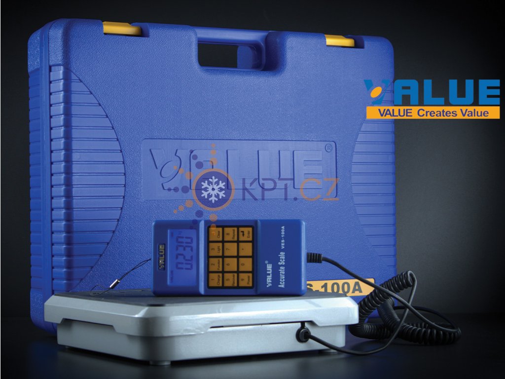 Elektronická váha VALUE VES-100A pro servis chladících a klimatizačních systémů.