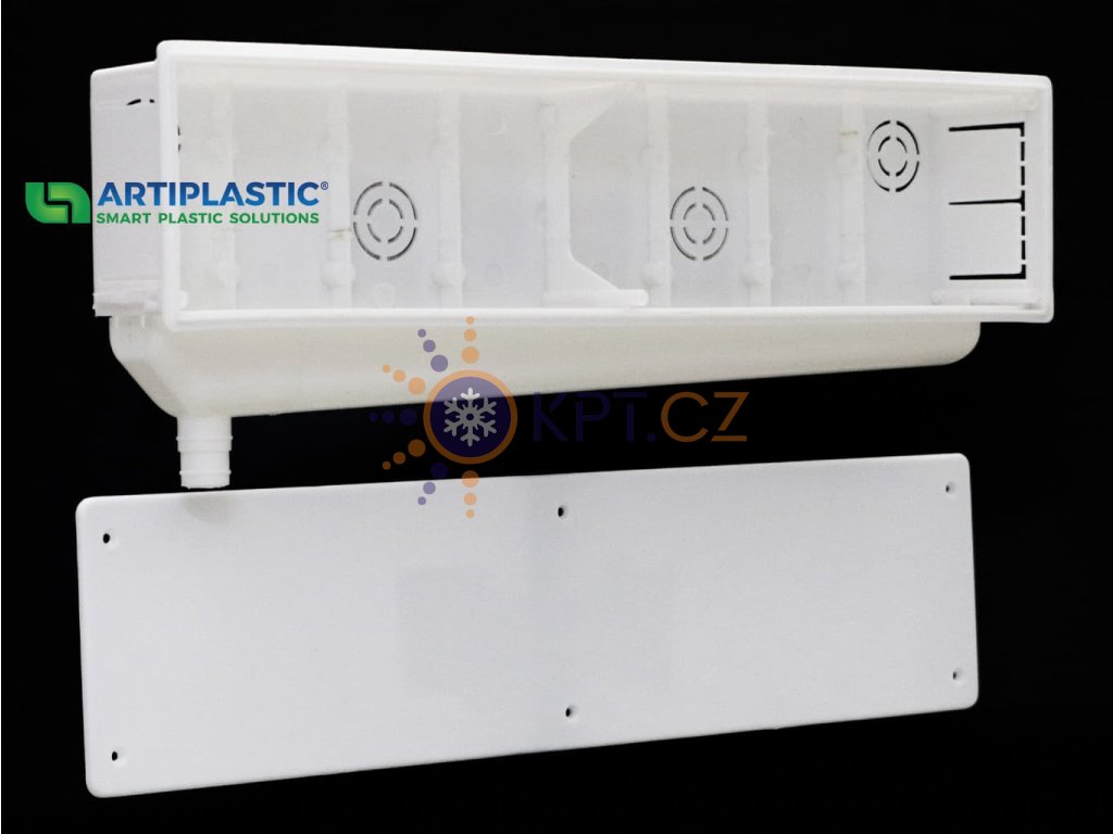 Podomítková instalační PVC krabice Artiplastic pro přípravu instalace klimatizace se svislým vývodem
