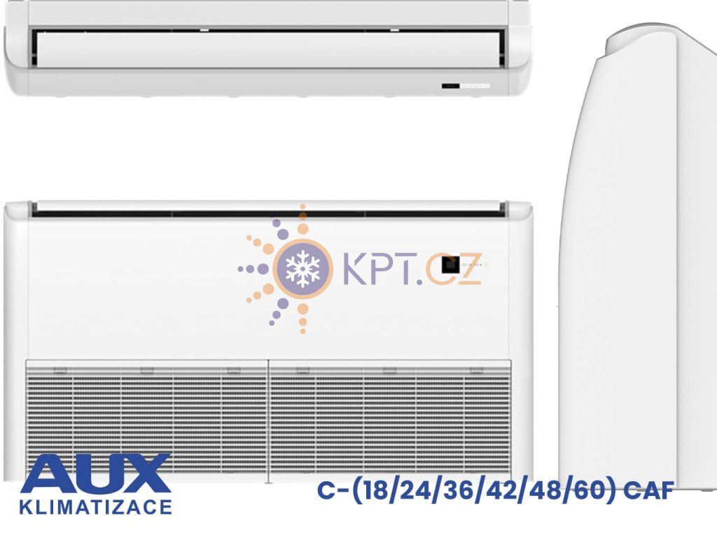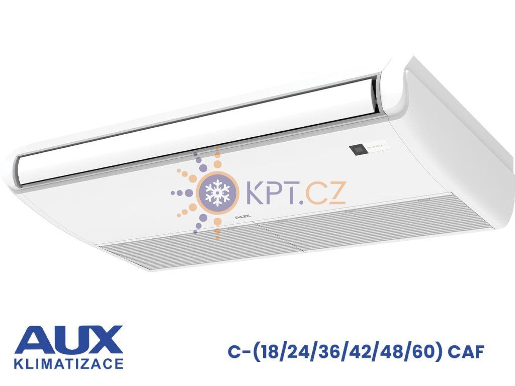 AUX C48 CAF je split klimatizace, která přenáší teplo mezi vnitřní a venkovní jednotkou. V režimu chlazení odebírá teplo z interiéru a odvádí ho ven, při vytápění pracuje opačně a teplo do místnosti vrací. Invertorové řízení upravuje výkon podle aktuální potřeby, takže zařízení nemusí běžet stále naplno. Díky 3 rychlostem ventilátoru lze přizpůsobit proudění vzduchu velikosti prostoru i výšce stropu. Výhodou je také univerzální montáž pod strop nebo vertikálně při podlaze, takže se lépe přizpůsobí dispozici místnosti. Vysoký průtok vzduchu pomáhá rychleji rozvést chlad nebo teplo i do větších prostor.